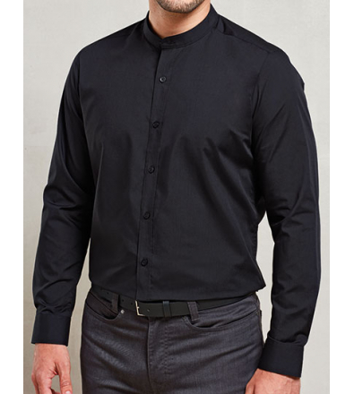 Mens Banded Collar Grandad Long Sleeve Shirt